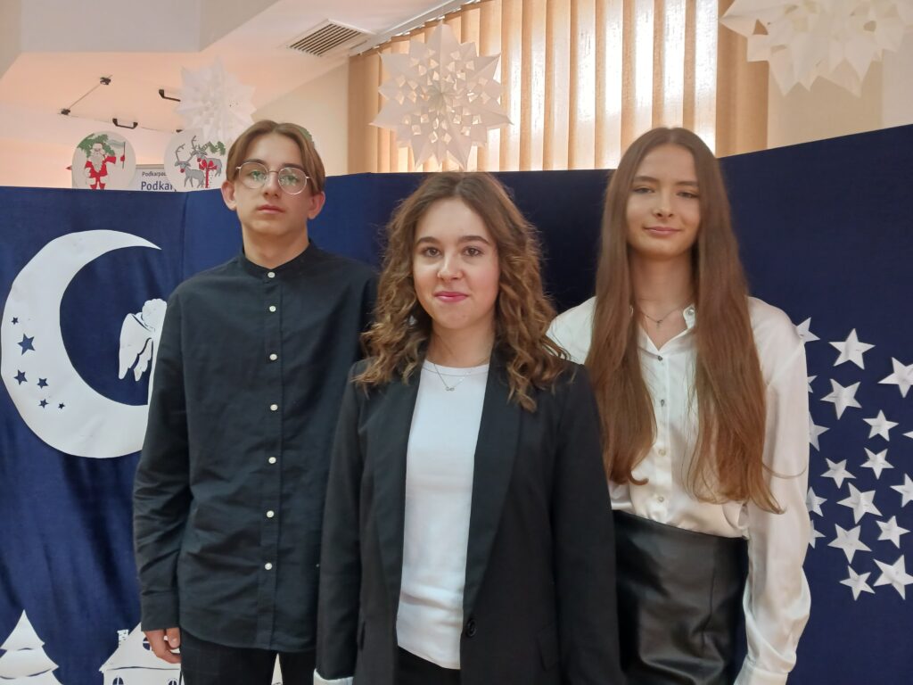 Uczniowie naszej szkoły tuż przed mikołajkami zafundowali sobie prezent. Ciężką pracą i sumiennością wywalczyli wysokie miejsca w konkursie recytatorskim „Am Anfang war die Poesie”. Konkurs odbył się 5 grudnia br. w Przemyślu. Nasze liceum reprezentowali: Maja Turek, Julia Witwicka oraz Franek Serafin, który znalazł się na podium w tym prestiżowym konkursie. Wszystkim serdecznie gratulujemy!