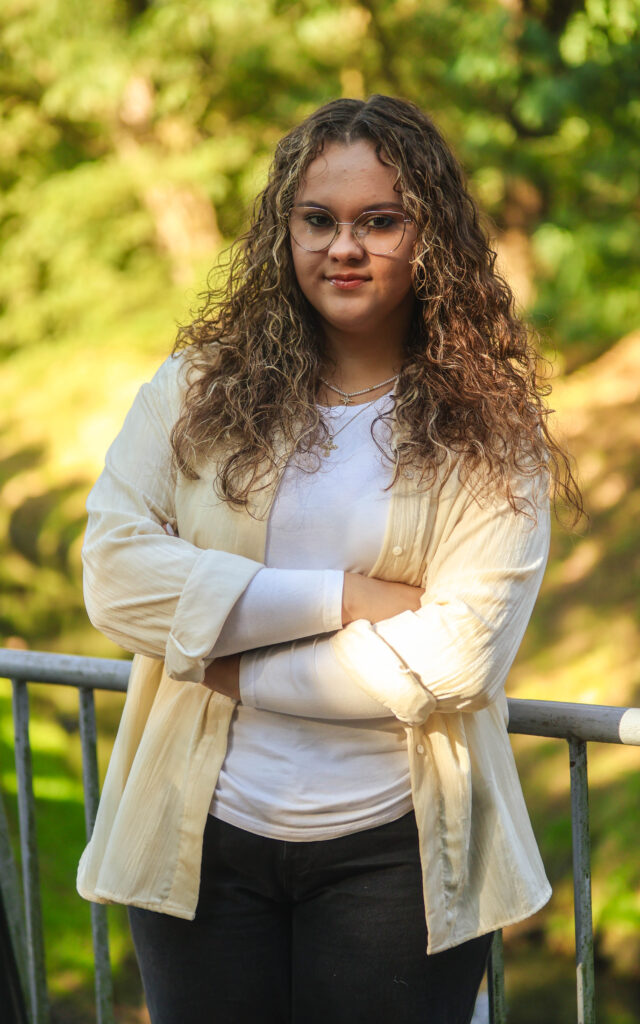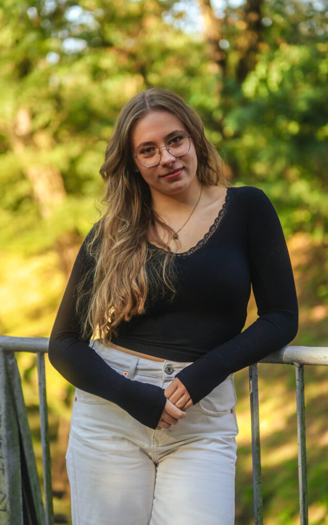 Uwielbiam muzykę – gram na gitarze basowej i śpiewam, bo wierzę, że muzyka potrafi połączyć ludzi i wyrazić to, czego czasem nie da się powiedzieć słowami. Jako przewodnicząca samorządu szkolnego, chcę wprowadzić do naszej codzienności trochę magii, radości i niezapomnianych chwil. Moim celem jest stworzenie przestrzeni, w której każdy z nas będzie czuł się częścią wyjątkowej społeczności.