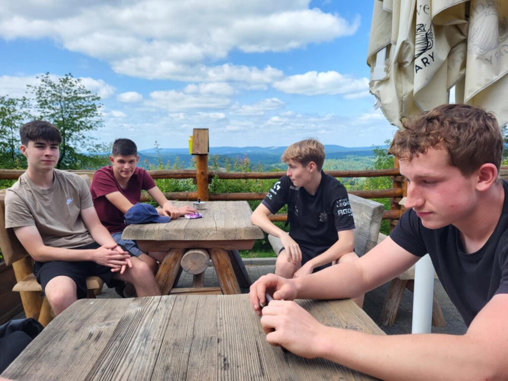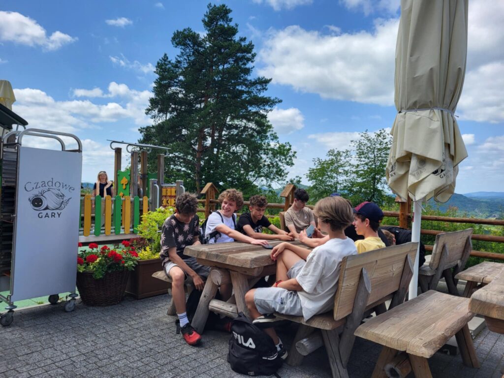 Pierwszym przystankiem była Osada Podróżnika w Hoczwi – miejsce, które już od pierwszych chwil rozbudziło w młodzieży ducha rywalizacji i współpracy. Wciągająca gra terenowa poprowadziła uczniów leśnymi ścieżkami w poszukiwaniu zakopanego skarbu. Tropienie znaków, rozwiązywanie zagadek i działania zespołowe pokazały, że zgrana klasa to najlepszy przepis na sukces.
