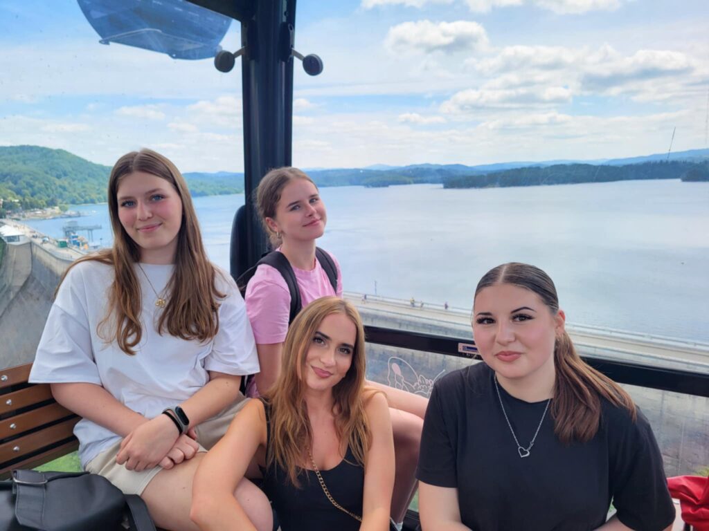 Następnie – kierunek: Solina. Przejazd gondolową kolejką nad taflą jeziora był jak lot nad bieszczadzkim krajobrazem – zapierające dech w piersiach widoki i chwila refleksji nad potęgą natury i dziełami człowieka. Młodzież poznała historię budowy zapory oraz jej znaczenie dla regionu – od funkcji energetycznych po ochronę przeciwpowodziową.